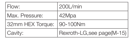 Operating Pressure420 barFlow200L/minCavityRexroth-LGMax.Operating Pressure42MpaTorque90-100Nm -